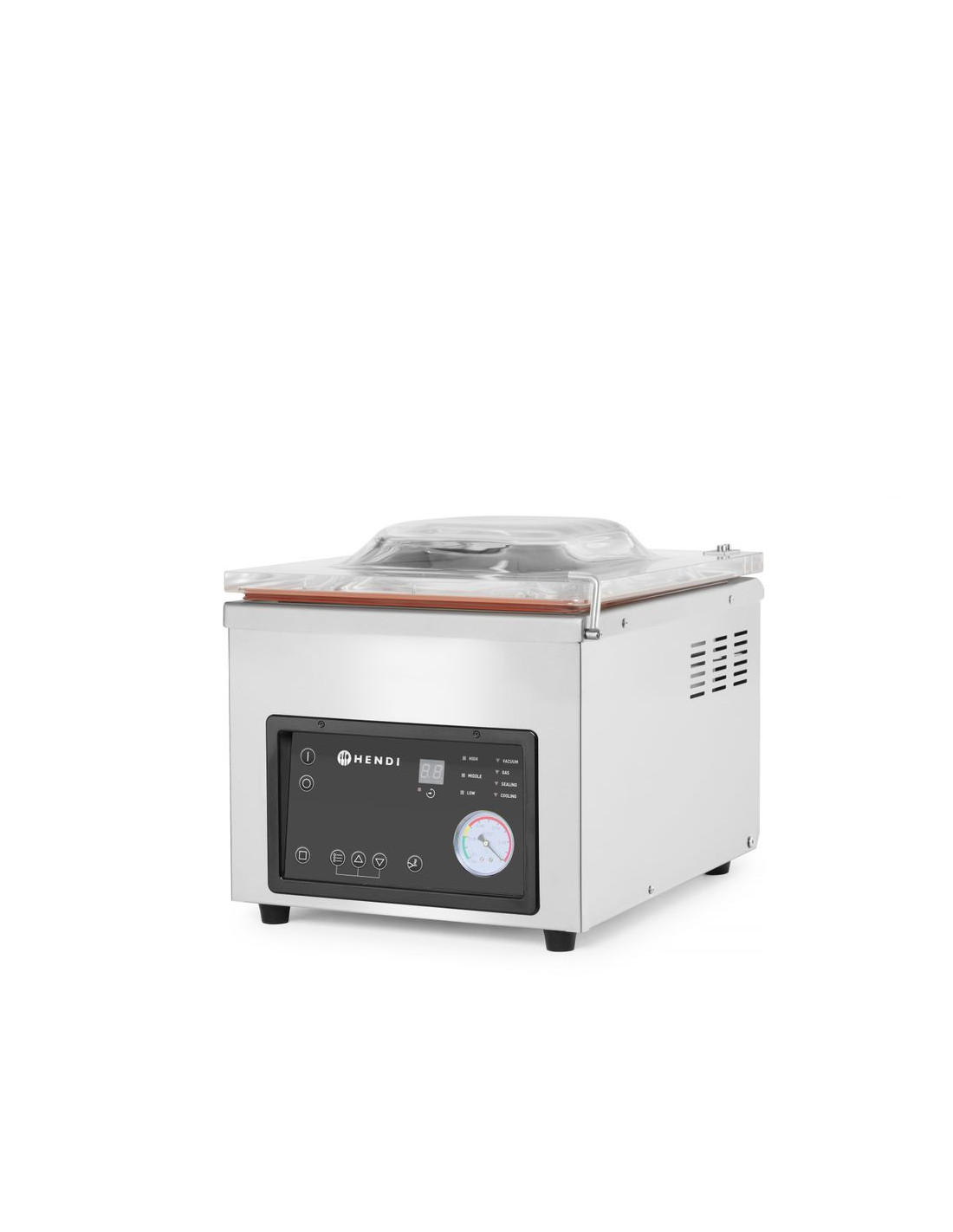HENDI vakuumkammarförpackningsmaskin är konstruerad för effektiv förpackning av livsmedelsprodukter, inklusive produkter med hög vattenhalt. Tillverkad av slitstarkt rostfritt stål och med ett transparent ABS-lock garanterar den tillförlitlighet och långvarig prestanda. Maskinen erbjuder exakt kontroll över vakuum- och förseglingstider.