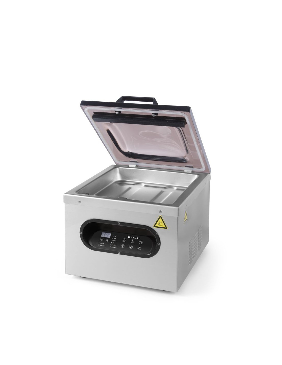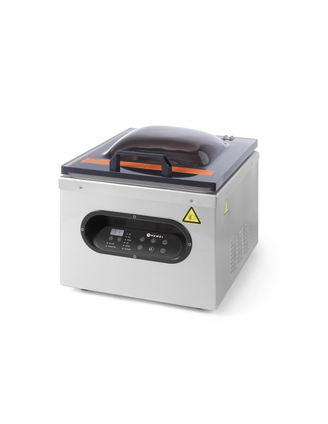 Hållbar design – hölje och kammare i högkvalitativt rostfritt stål Transparent lock tillverkat av slitstark ABS-plast av hög kvalitet gör det möjligt att kontrollera förpackningsprocessen Konvext lock gör det möjligt att förpacka stora portioner Förseglingstid för påsar: 0–6 s 6 vakuumnivåer att välja mellan Endast förseglingsfunktion Marineringsfunktion: 11 cykler för att suga ut och släppa in luft i påsen (en cykel tar 9 minuter); tack vare undertrycket tränger marinaden in i produkten snabbare, vilket avsevärt påskyndar hela processen Förpackningscykeln startar automatiskt när det övre locket stängs Professionell och högeffektiv rotationspump Avsedd för kontinuerlig drift Pumpprestanda: 77 l/min Kammarmått: 350x300x(H)110 mm Förseglingslisten är 290 mm lång och 3,5 mm bred. Nettovikt: 24,4 kg