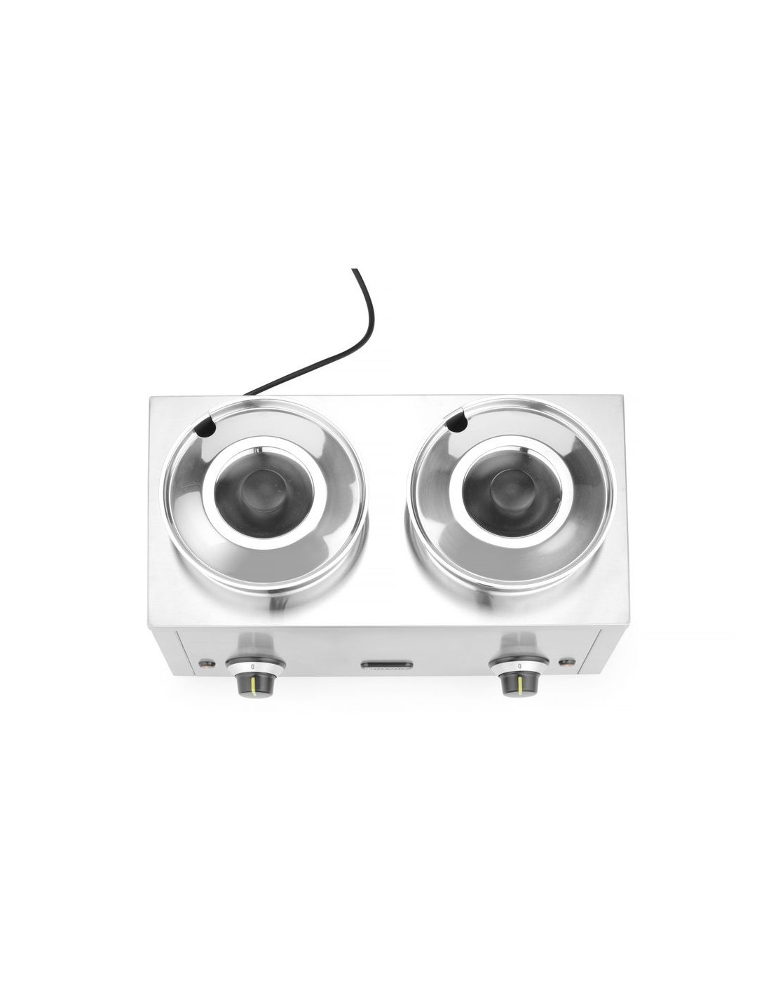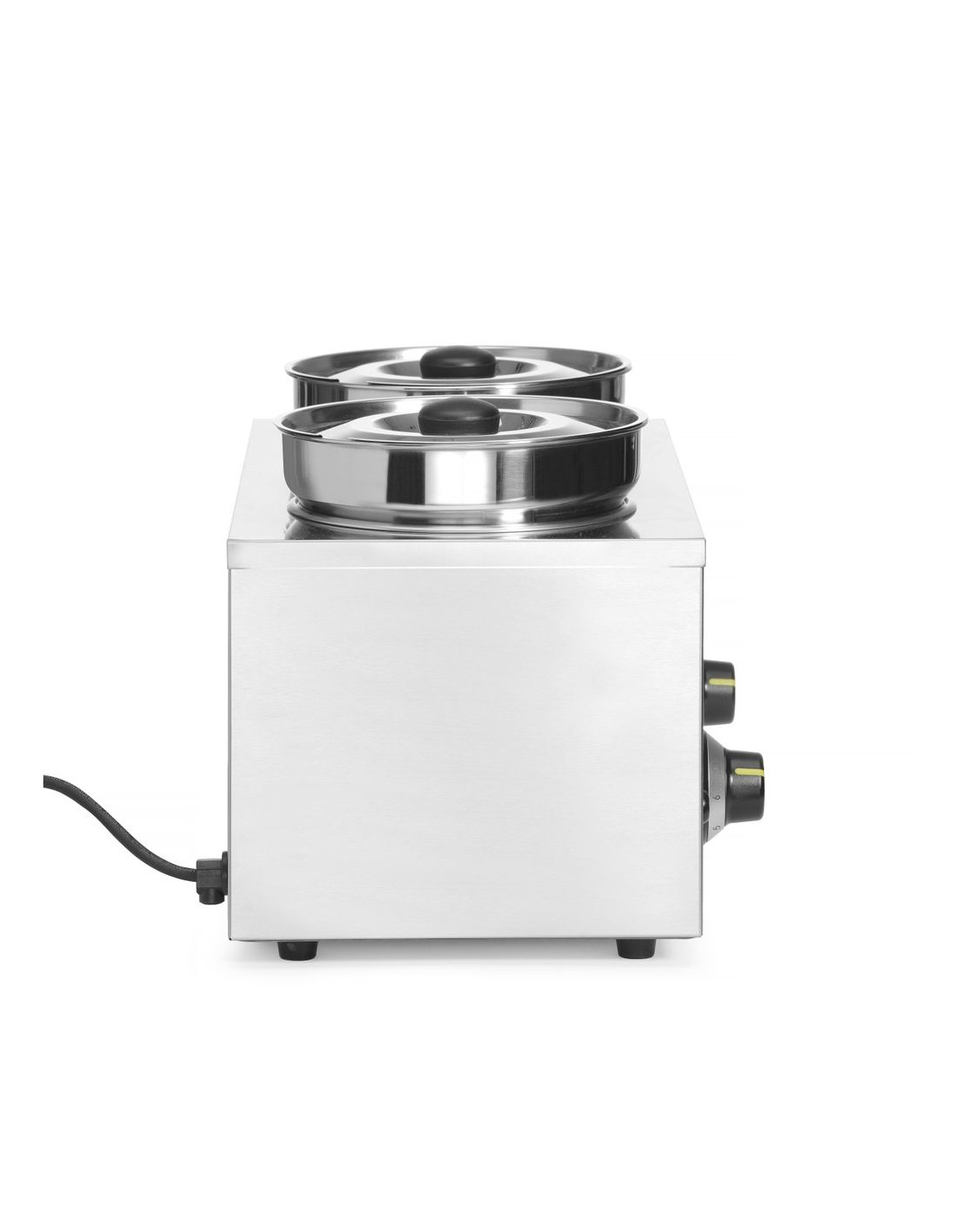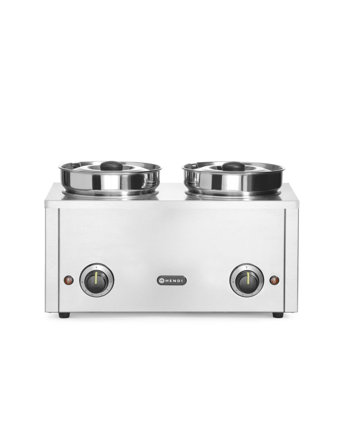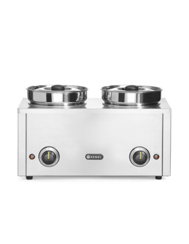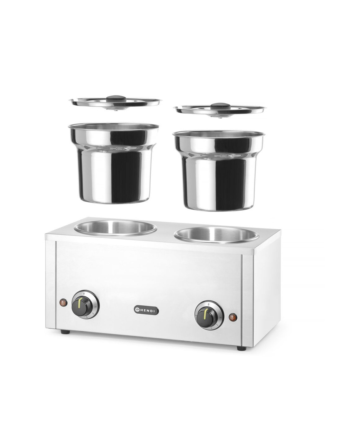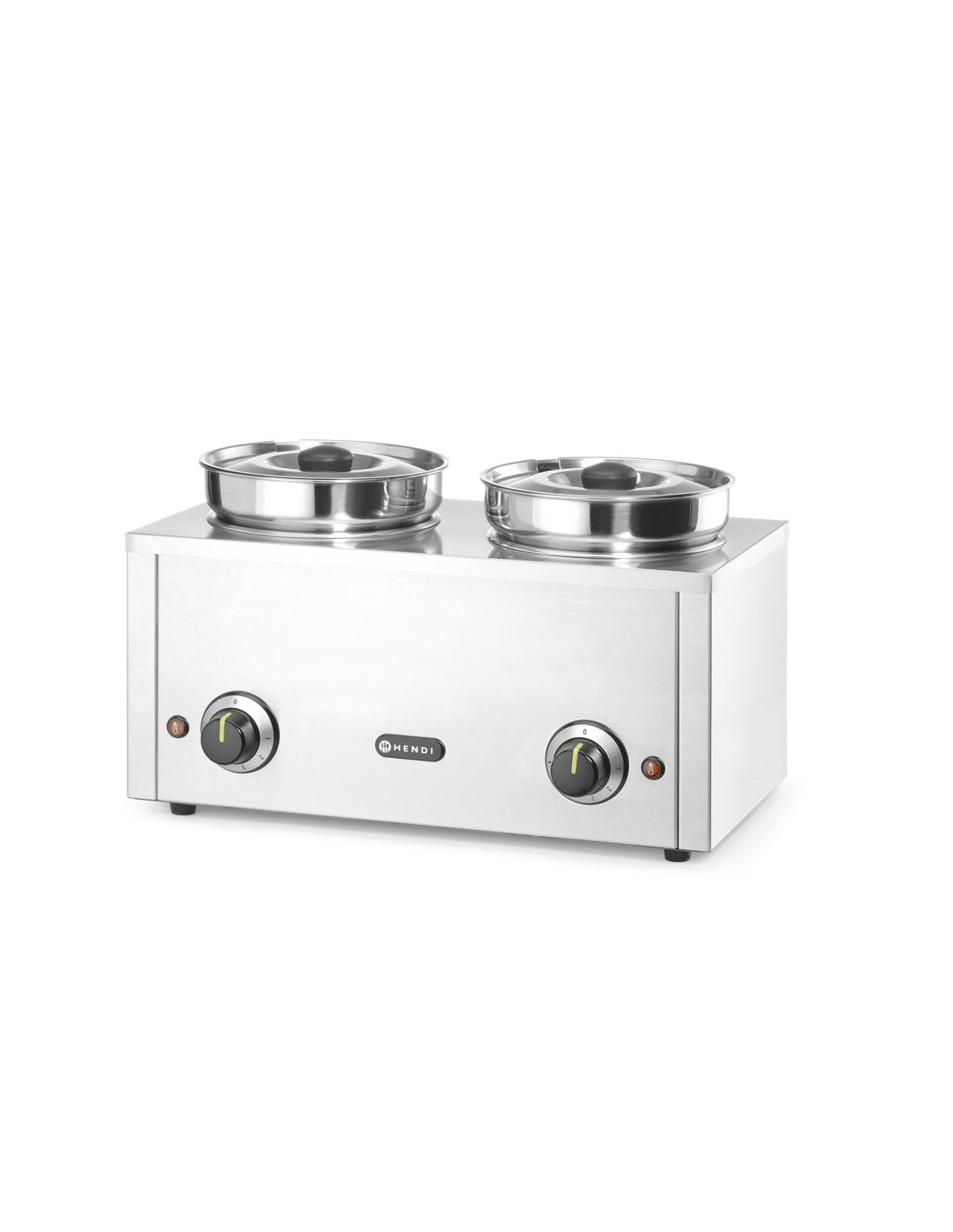 HENDI Thermosystem 2 håller heta såser, soppor och andra livsmedel vid önskad temperatur utan att brännas vid. Temperaturen kan justeras i 6 nivåer beroende på produkt. Den slitstarka konstruktionen har fötter som inte sover för att säkerställa stabilitet.