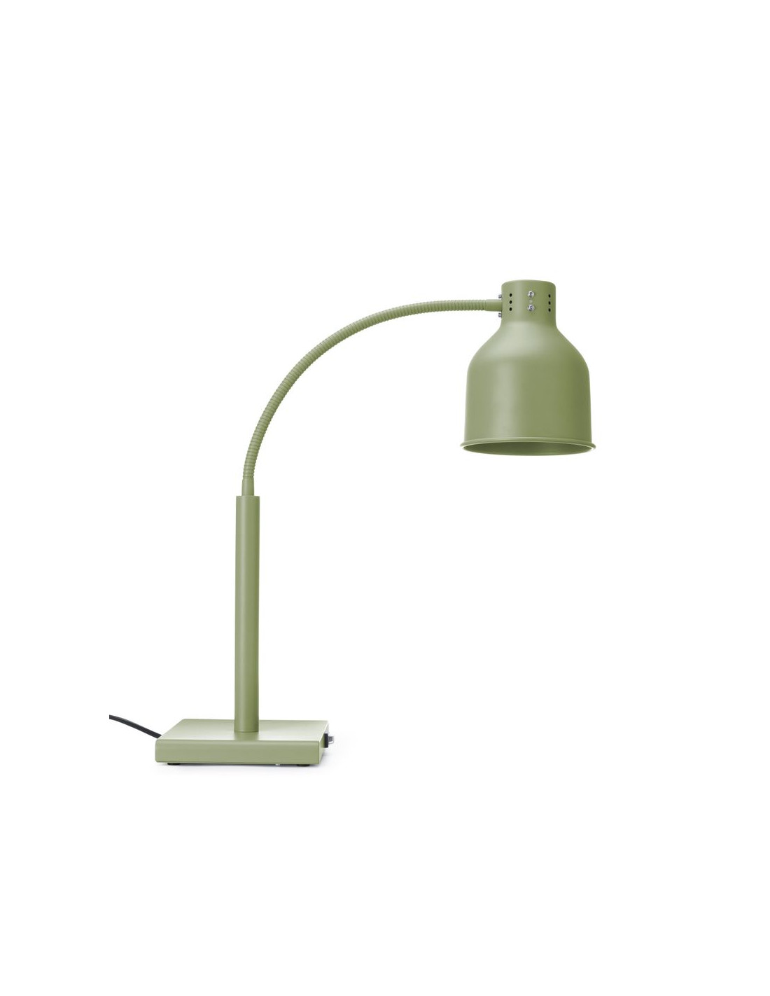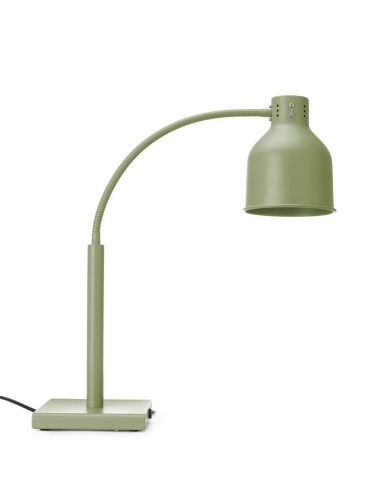 Tillverkad av järn. Med rostskyddsbeläggning. Lampskärm monterad på en flexibel arm. Infraröd splittersäker glödlampa ingår – lämplig för att hålla mat varm. Passar E27-glödlampor.