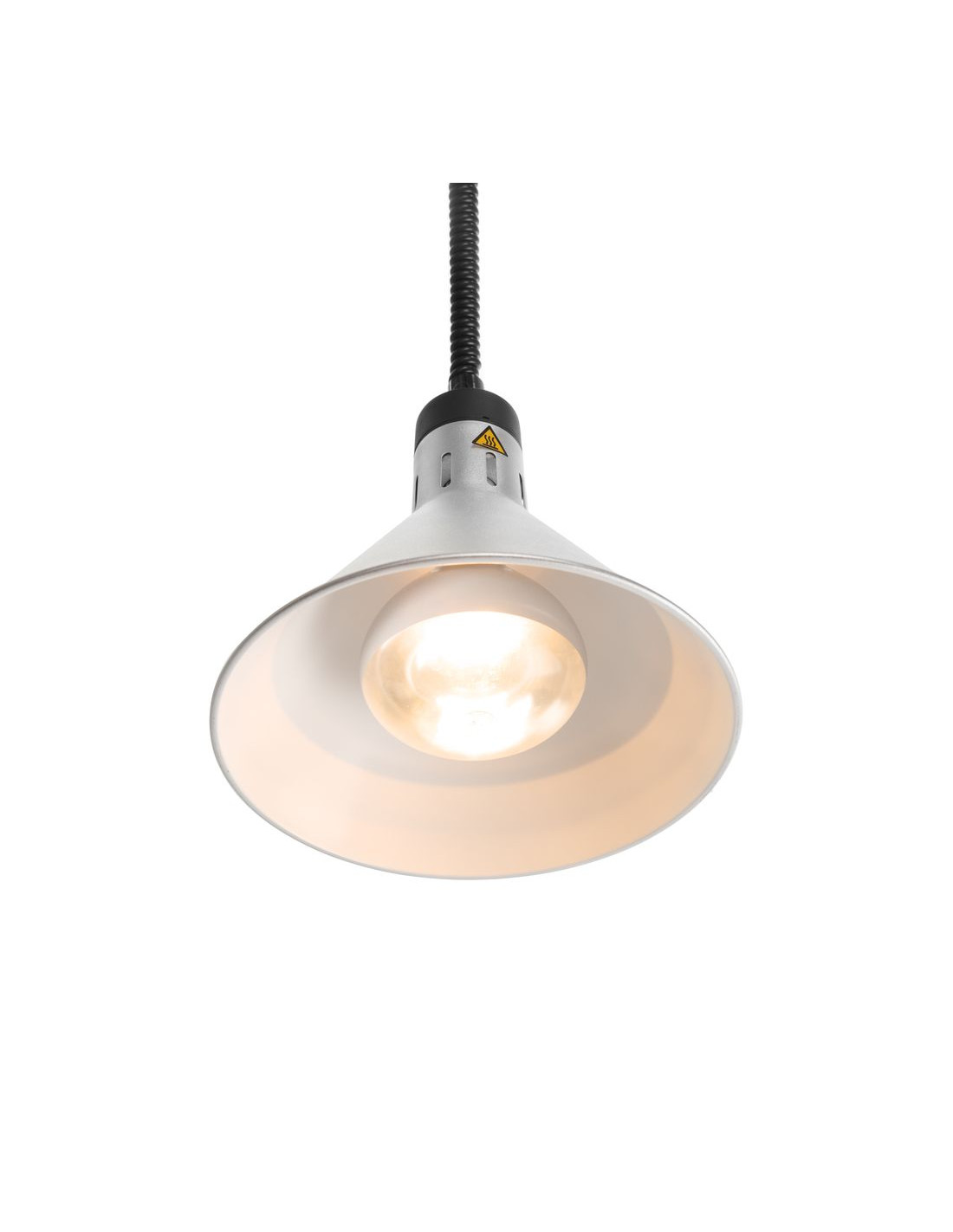 HENDI Rise and Fall-värmelampan, konisk, erbjuder flexibel värmekontroll med en justerbar sladd som sträcker sig från 70 till 150 cm, vilket möjliggör exakt justering av värmeintensitet och lampans placering för att passa olika behov inom livsmedelsservice. Dess splittersäkra glödlampa ökar säkerheten i hektiska miljöer, medan den praktiska på/av-knappen på toppen säkerställer enkel användning.
