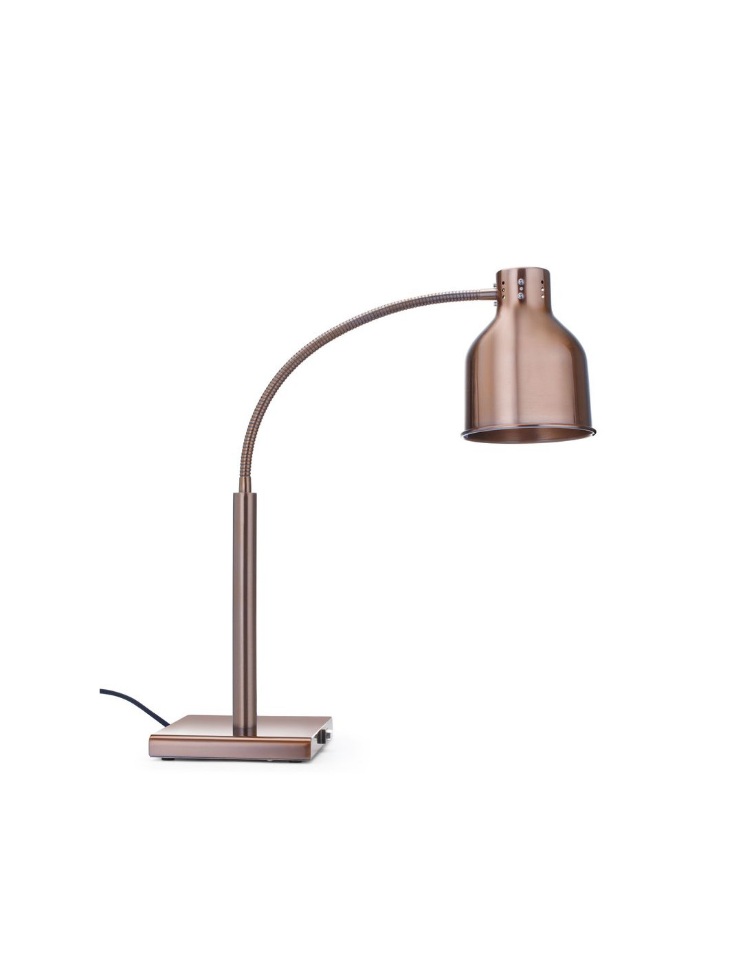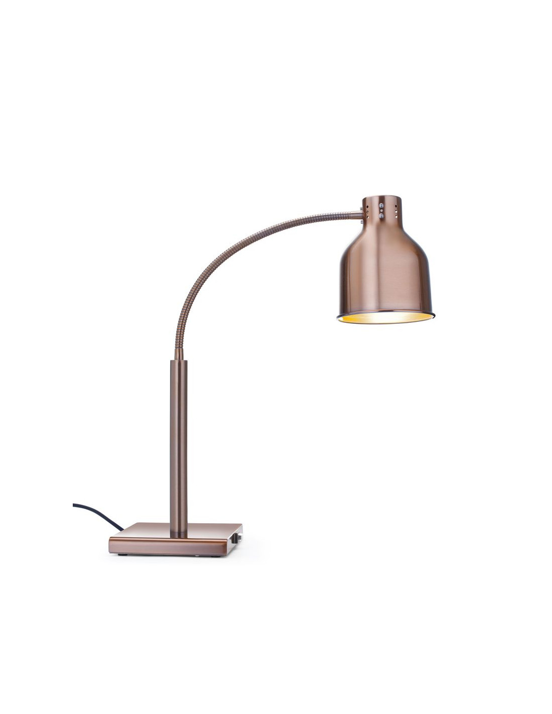Lampskärm tillverkad av aluminium. Stativ och mjukt rör tillverkat av rostfritt stål. Med rostskyddsbeläggning. Lampskärm monterad på en flexibel arm. Infraröd, splittersäker glödlampa ingår – lämplig för att hålla mat varm. Passar E27-glödlampor.
