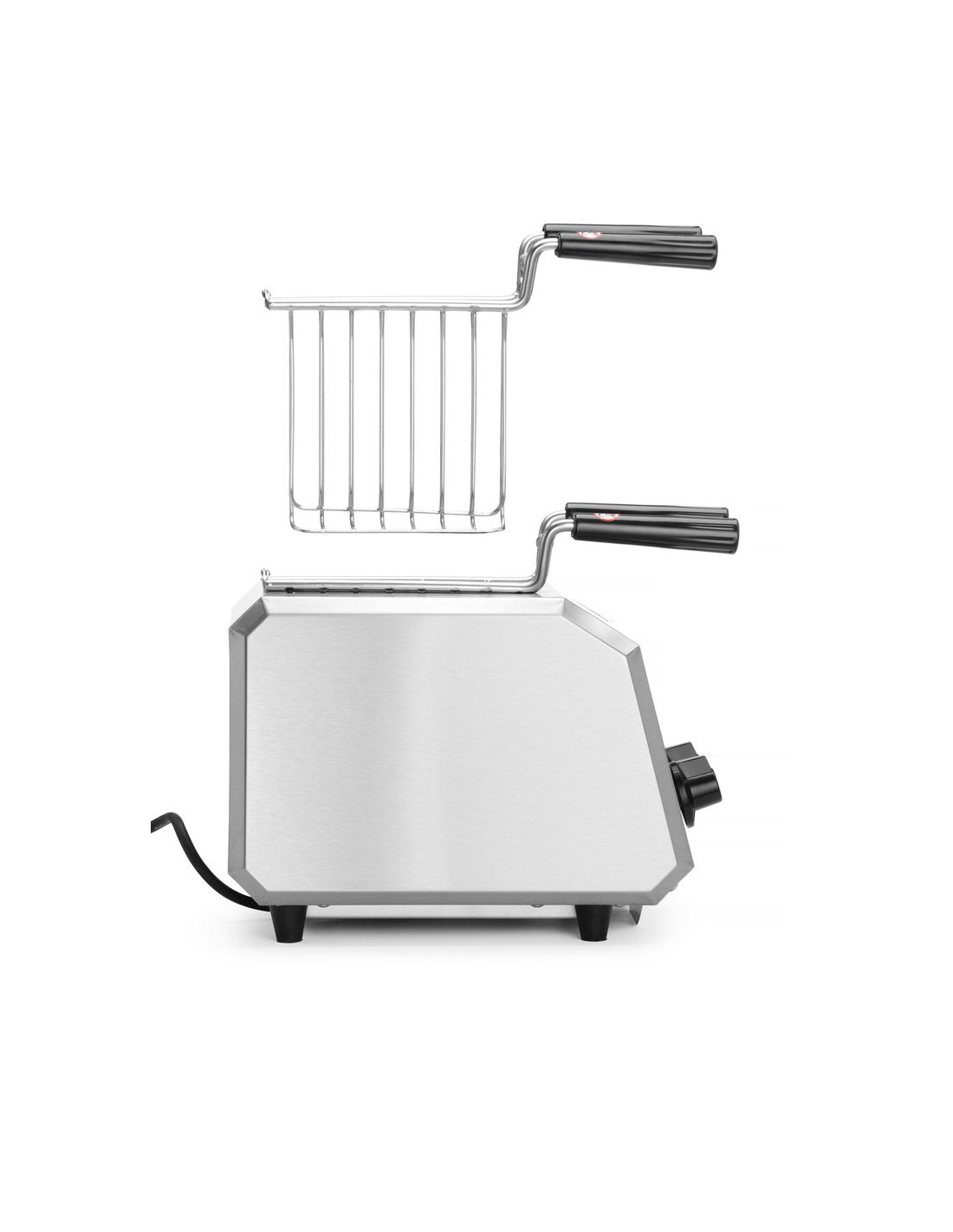 Hölje i rostfritt stål. Tång med isolerade handtag av PF-harts. Vänster och höger springa kan manövreras separat. Timer med larm justerbart till maximalt 8 minuter. Avtagbar smulbricka.