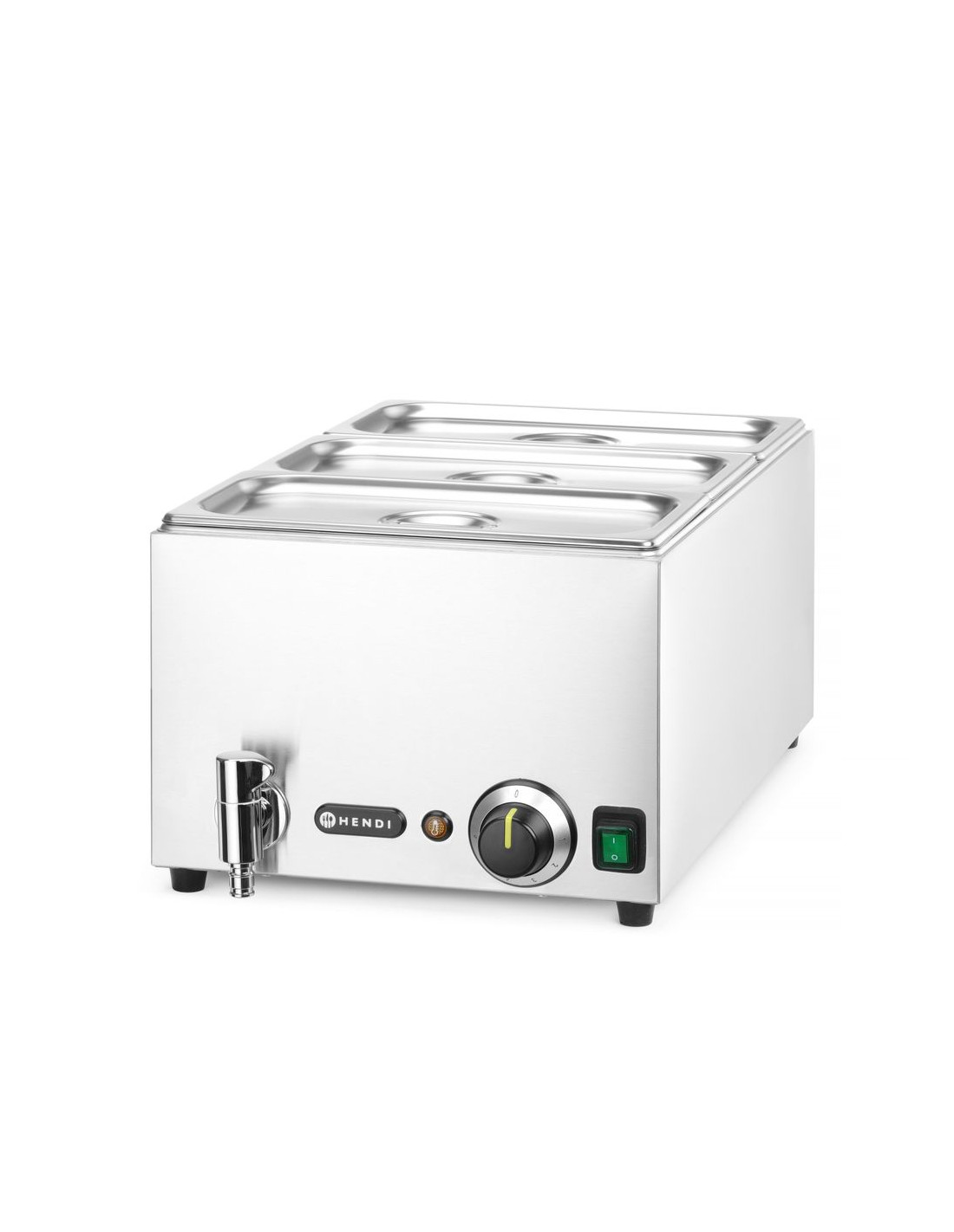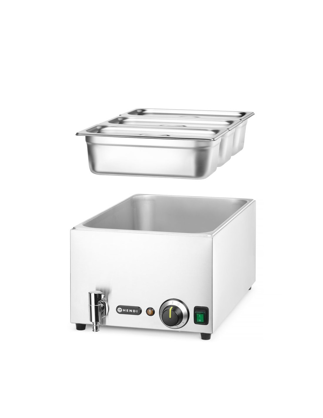 Set: bain-marie hendi ranger med avtappningskran + 3x gn 1/3 med lock, hendi, gn 1/1, 230v/1000w, 605x332x(h)242mm