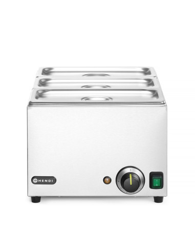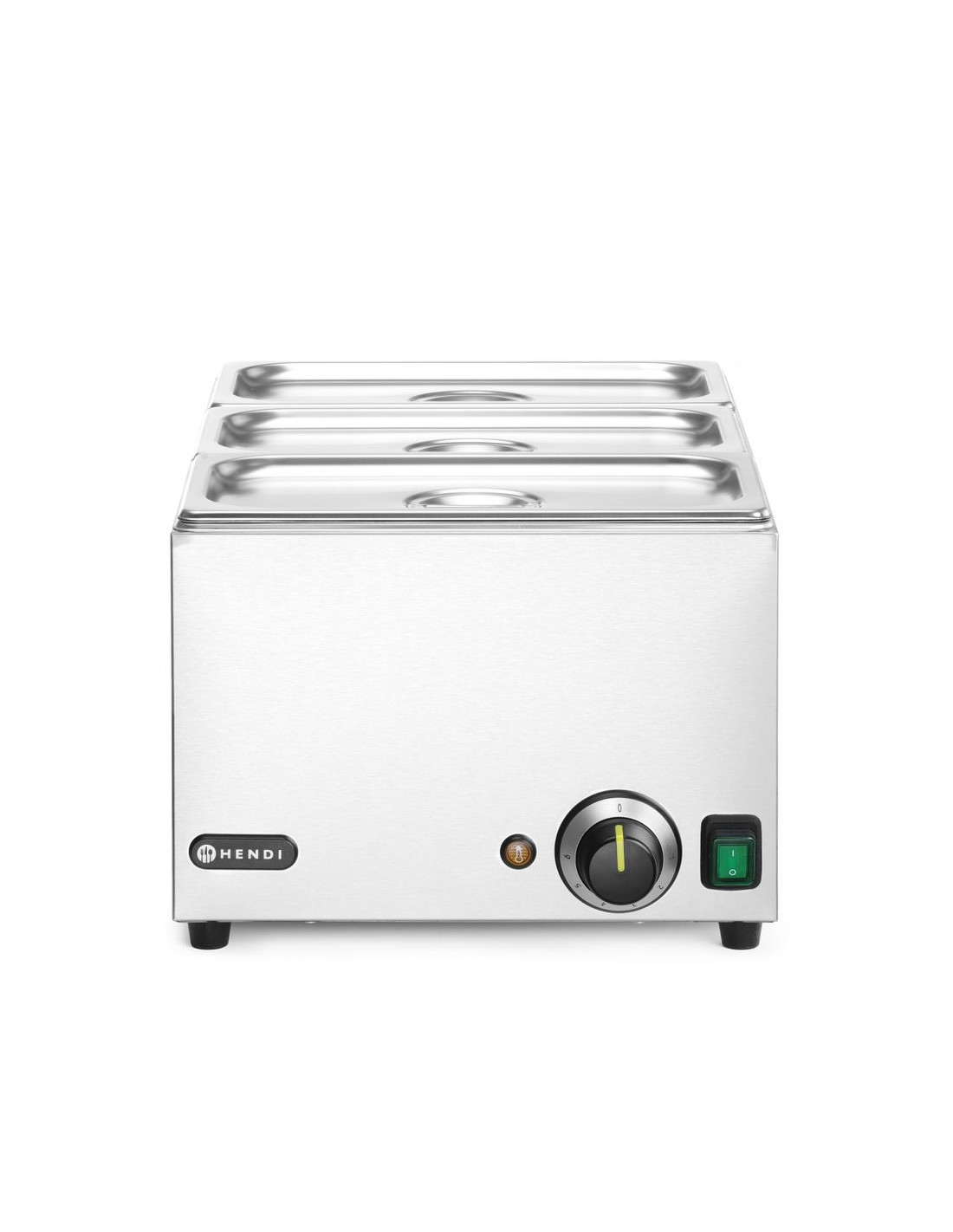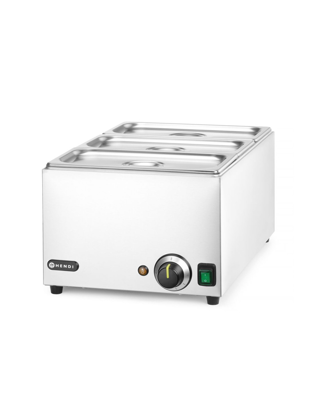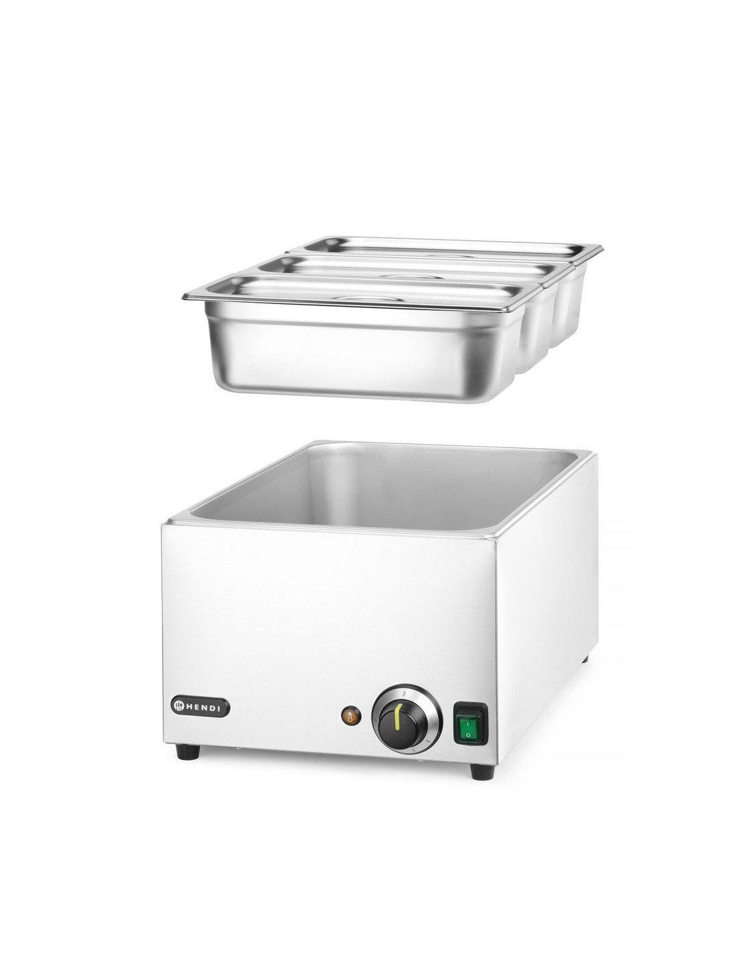 Set: Bain-marie HENDI RANGER + 3x GN 1/3 med lock värmer gradvis innehållet i GN-behållaren eller håller den vid en kontrollerad, konstant temperatur utan att brännas eller koka. De rundade hörnen på denna bain-marie-vattenbehållare gör rengöringen mycket enklare. Den är ett idealiskt och pålitligt tillskott till välbesökta kök eller självbetjäningsbufféer.