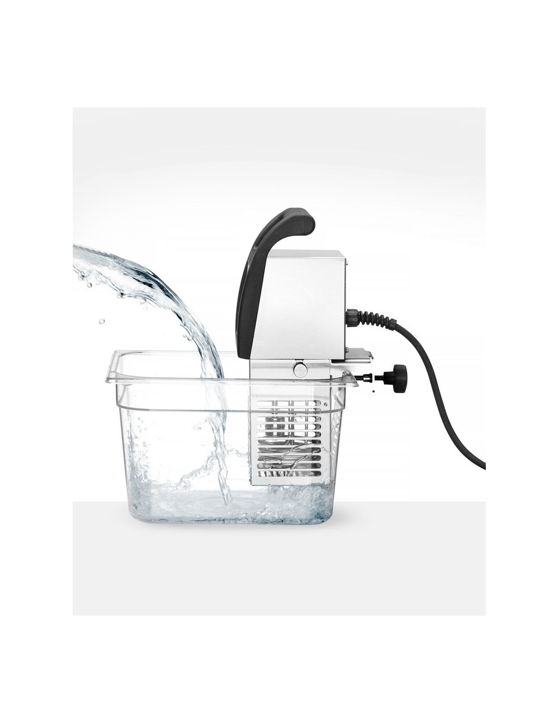 Slitstarkt hölje tillverkat av rostfritt stål och glasfiberförstärkt polyamid. Utformad för att passa alla runda eller fyrkantiga behållare/kastruller med ett minsta djup på 15 cm. Lämplig för behållare upp till 56 liter. Ställ in temperatur och tid på den lättanvända kontrollpanelen. Extremt exakt temperaturkontrollsystem – kan ställas in från 5 °C upp till 95 °C i steg om 0,1 °C. Timern kan ställas in från 1 minut upp till 99 timmar i steg om 1 minut. Snabb förvärmning tack vare 2000 W värmeelement. Propellern arbetar kontinuerligt för att säkerställa en stabil vattentemperatur i hela behållaren. Skyddet för låg vattennivå stänger av apparaten om det inte finns tillräckligt med vatten. Temperatursensor förhindrar överbelastning och överhettning.