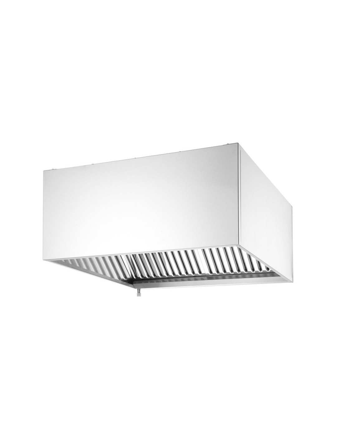 Tillverkad av 18/0 rostfritt stål. Bultad konstruktion för självmontering. Med stos för anslutning till ventilation: 1x Ø200 mm. Labyrintfilter tillverkade av rostfritt stål och diskmaskinssäkra. Smuts och fett från labyrintfiltren samlas i ett inbyggt ränna. System av hål och upphängningar för montering. Bör anslutas till fläkten eller ventilationssystemet i byggnaden.