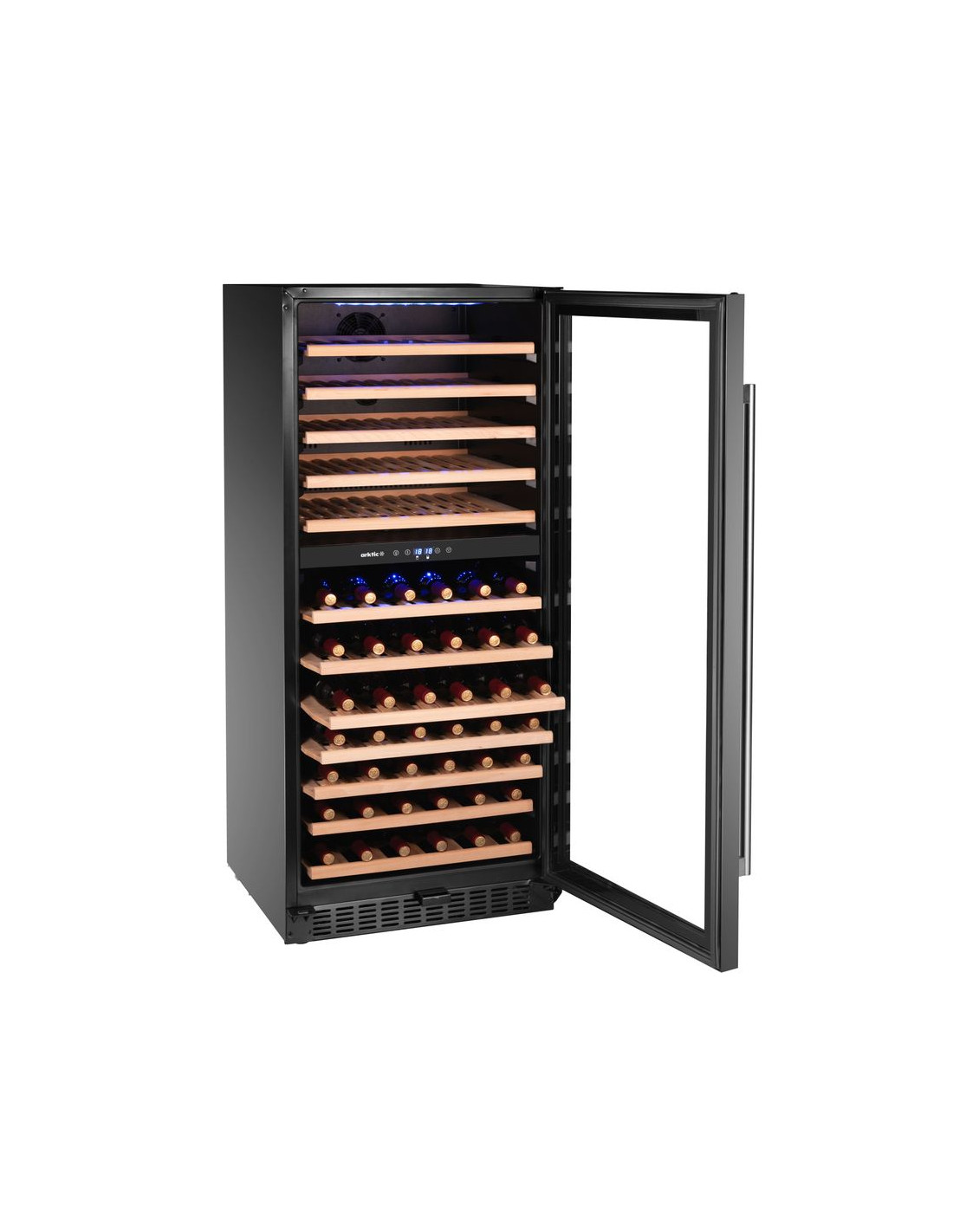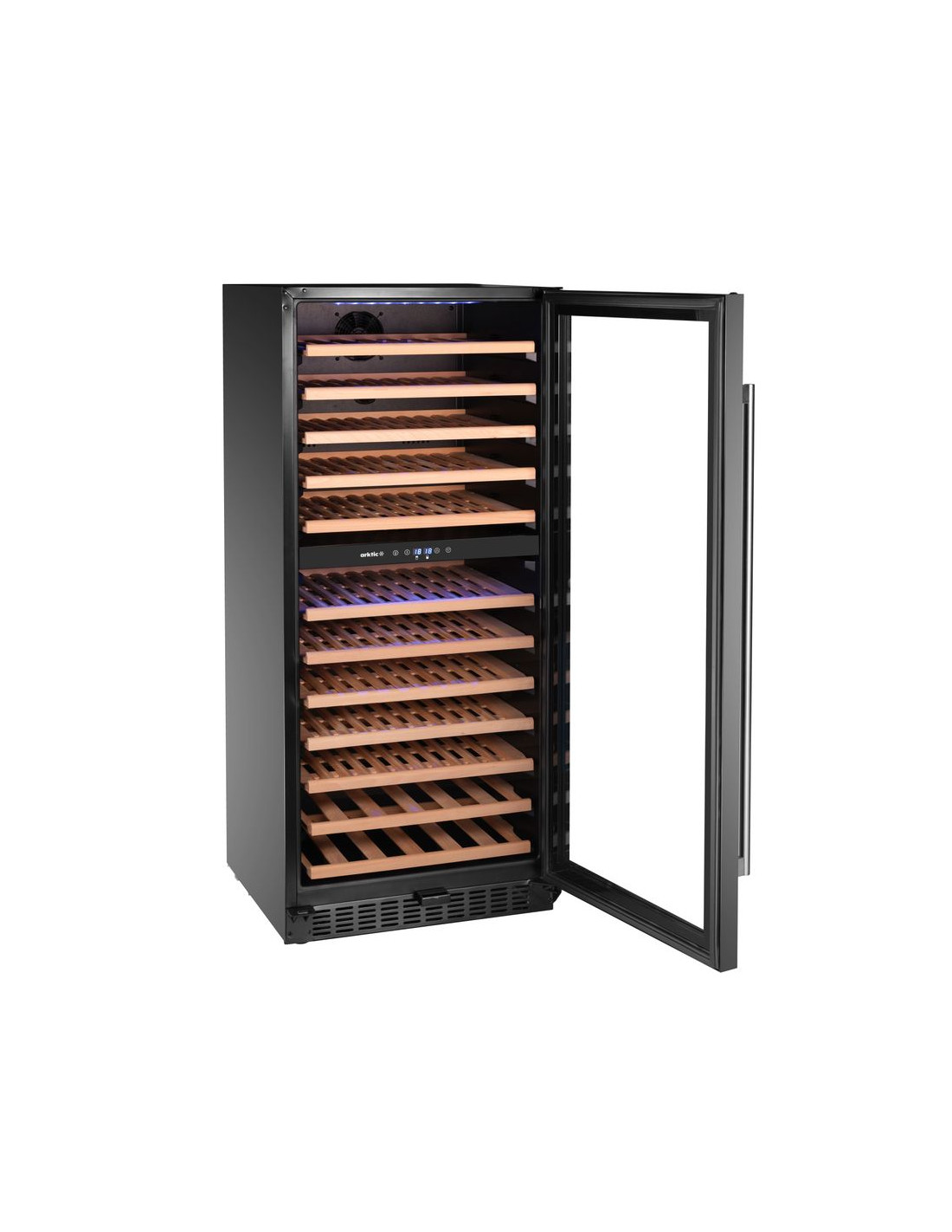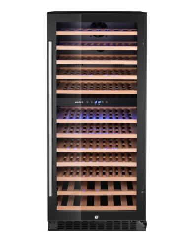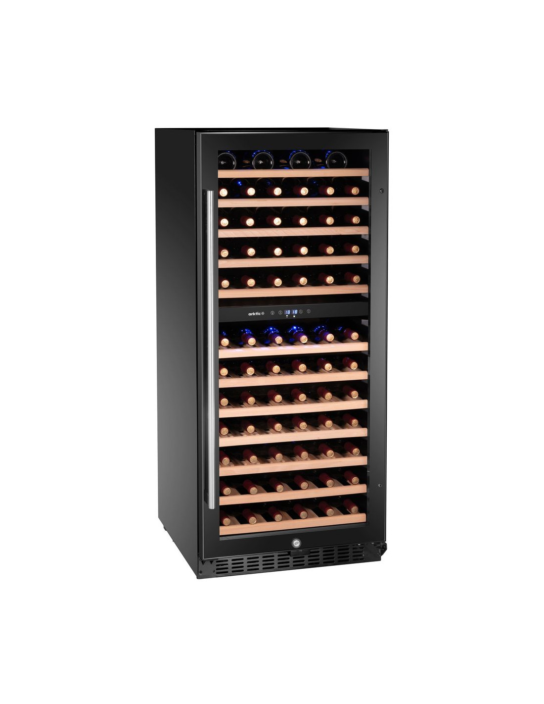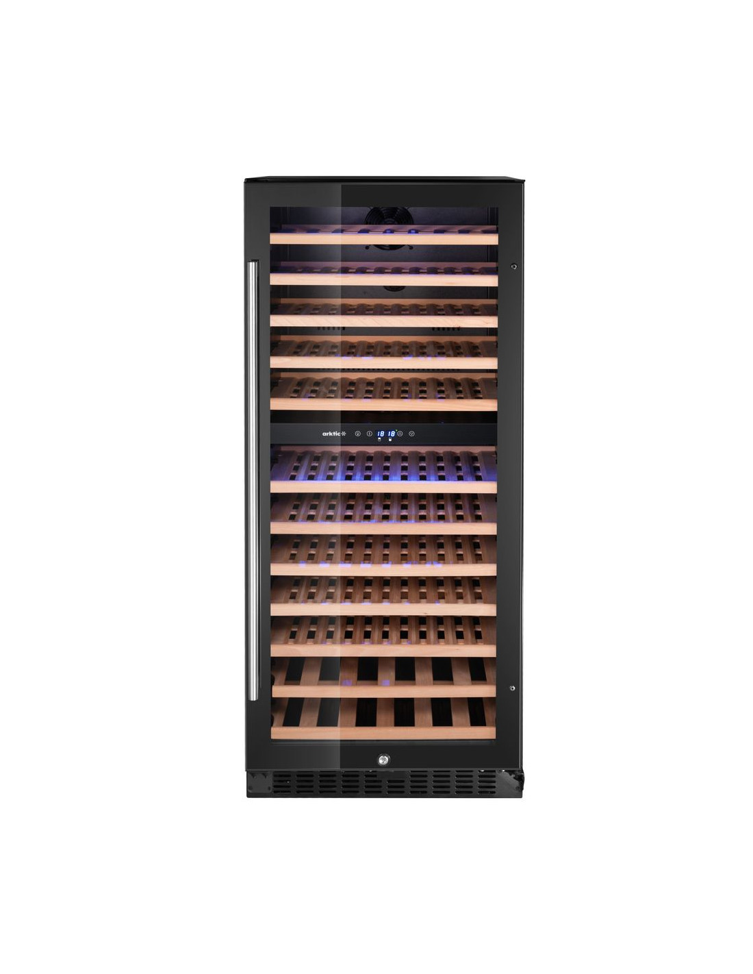 Arktic vinkylare, 2-zoner, 124 flaskor har dubbla kylzoner med justerbar temperatur. Lämplig för förvaring av upp till 124 flaskor. Designad med svart pulverlackerad finish, härdad ramlös glasdörr, utdragbara hyllor i bokträ och LED-belysning. En digital display, pekskärmar, automatisk avfrostning och dörrlås ger ytterligare funktionalitet.